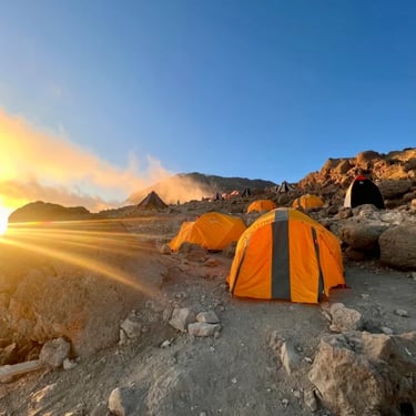We continue up to the Barafu Camp. You have completed the South Circuit, which offers views of the summit from many different angles. Here we make camp, rest, enjoy dinner, and prepare for the summit day.
